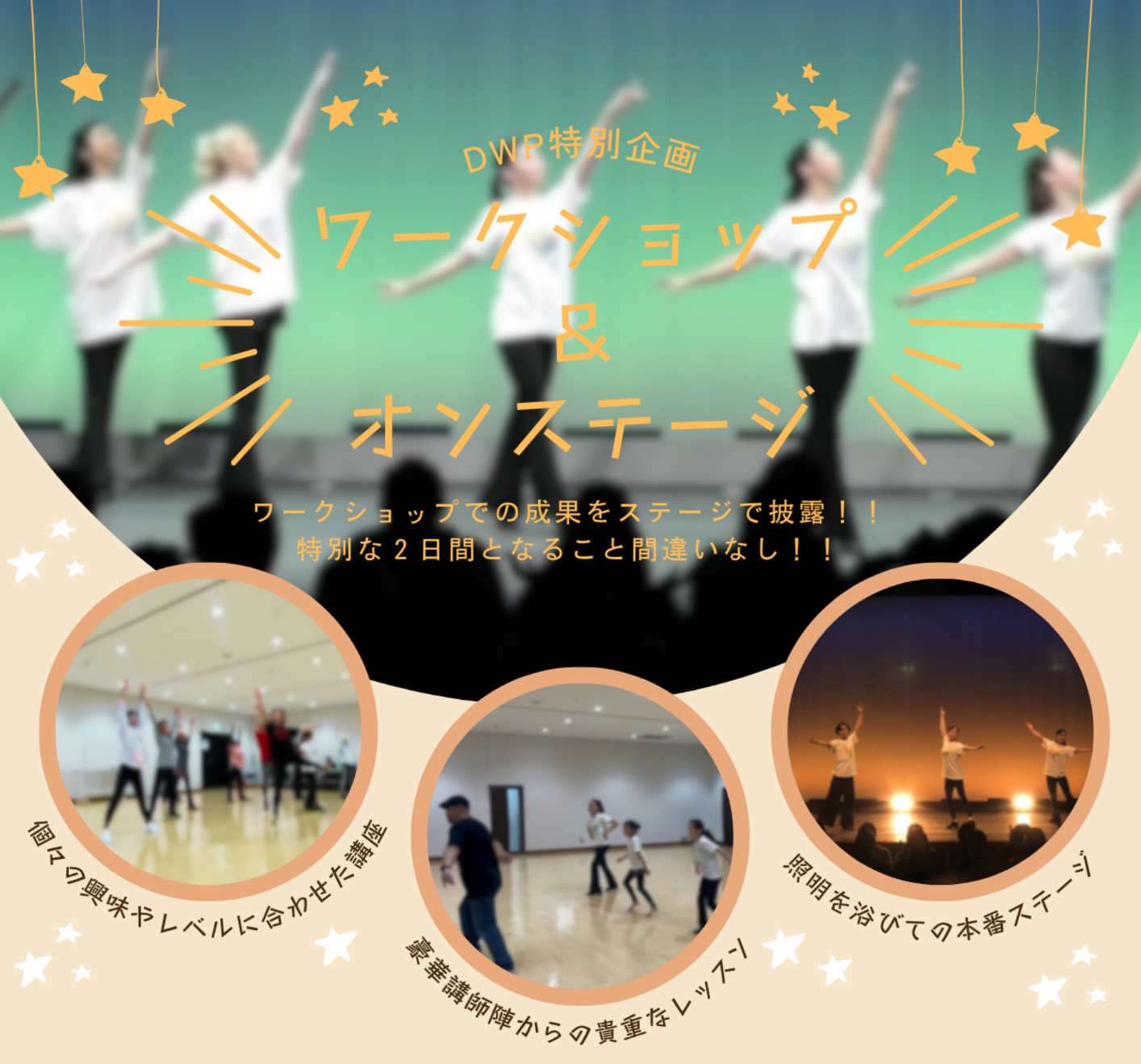 ステージショー、ワークショップ、オンライン配信の、ご案内役です。